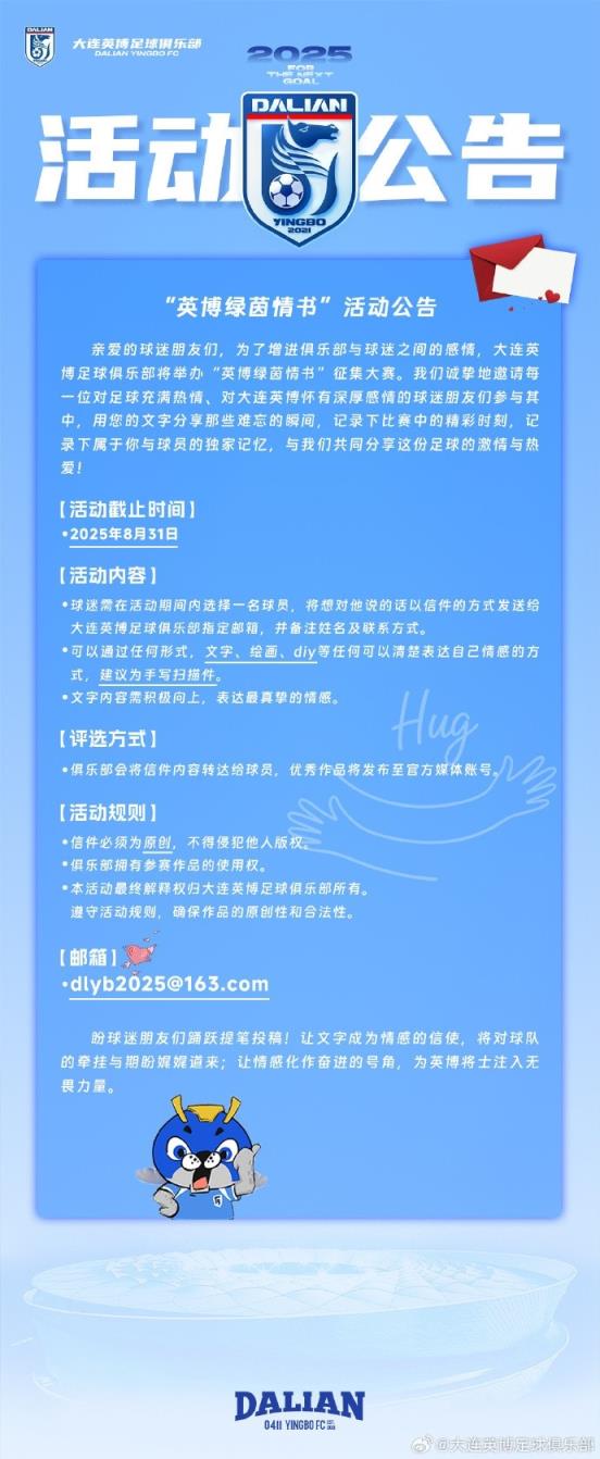 8月28日讯 大连英博官方在七夕前夕发文举办情书活动。