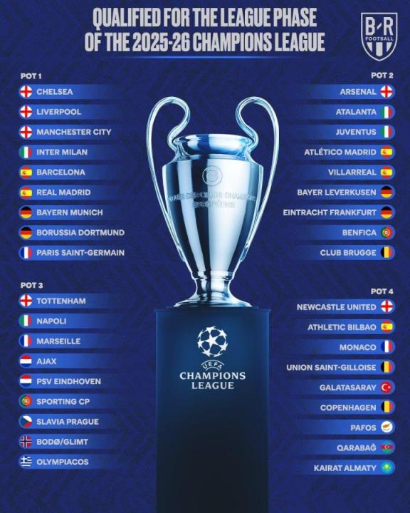 四档球队:摩纳哥、加拉塔萨雷、圣吉罗斯、毕尔巴鄂竞技、纽卡、哥本哈根、AEP帕福斯、卡拉巴赫、阿拉木图凯拉特
