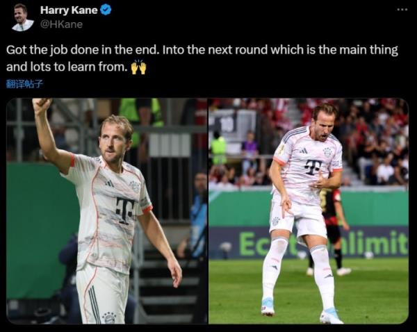 8月28日讯 在拜仁3-2击败韦恩,晋级德国杯第二轮后,凯恩更新了社交媒体。
