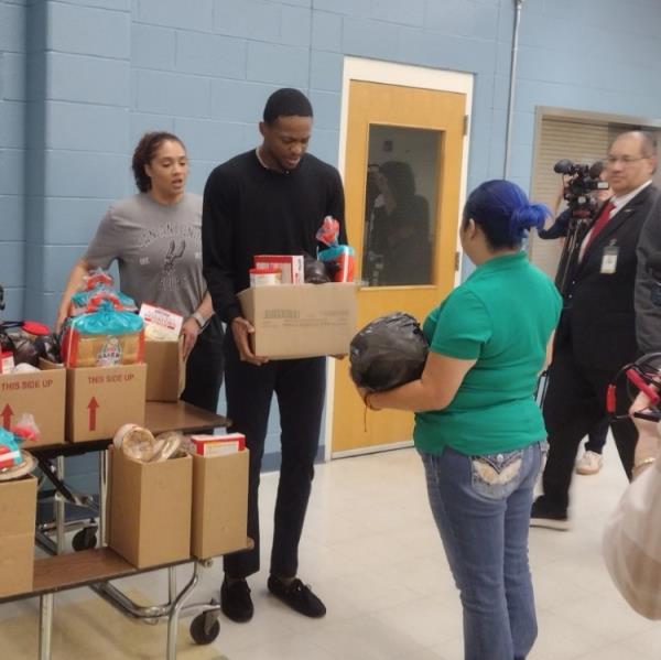 11月21日讯 据马刺记者Jeff Garcia报道,马刺后卫福克斯近日参加了社区活动,给南圣安东尼奥的居民提供食物篮子。