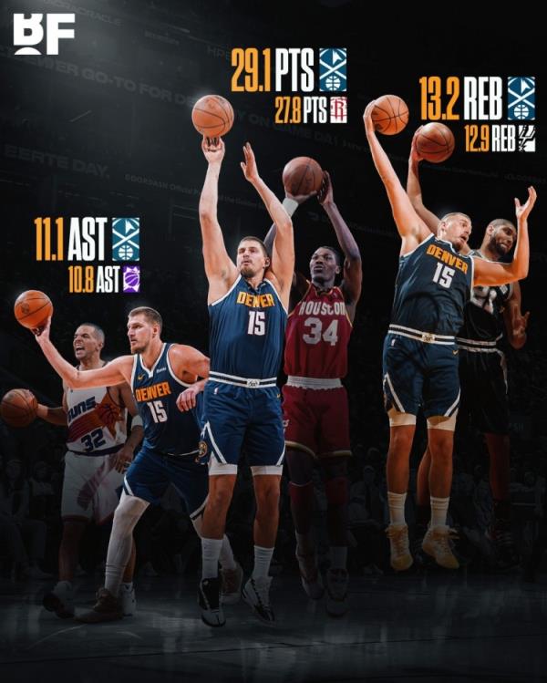 约基奇赛季得分>大梦生涯最高 篮板>邓肯最高 助攻>基德最高