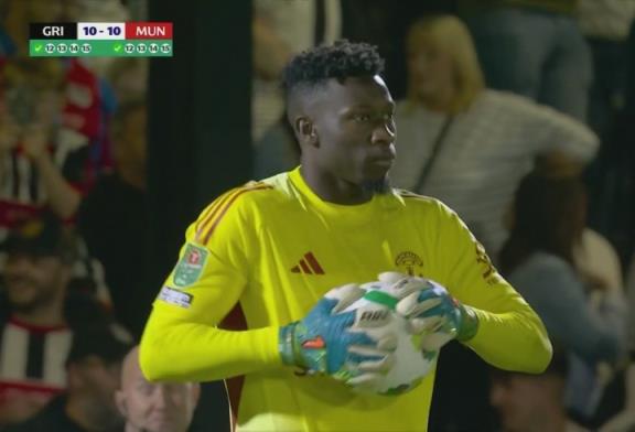 08月28日讯 联赛杯曼联vs英乙队格林斯比,格林斯比点球12-11战胜曼联。英乙队13粒点球,奥纳纳仅扑出1粒。