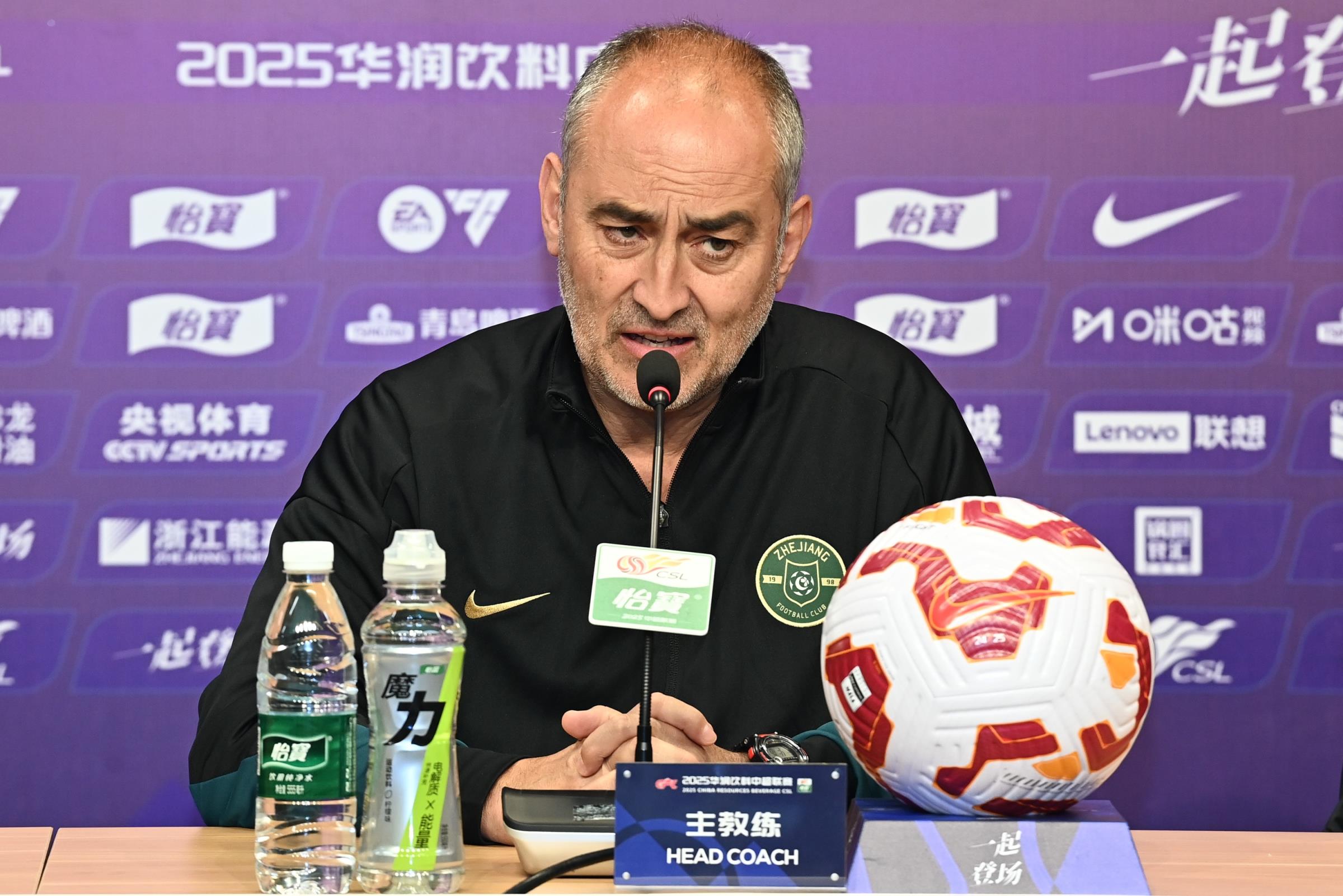 11月21日讯 中超联赛最后一轮,浙江队将主场对阵青岛海牛。据《足球报》报道,赛前,浙江队主帅卡内达携球员弗兰克出席了新闻发布会。