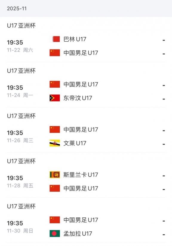 2026亚足联U17亚洲杯预选赛将于11月22日-30日在重庆市进行。中国U-16国家男子足球队将先后迎战巴林队、东帝汶队、文莱队、斯里兰卡队和孟加拉国队,争夺晋级明年在沙特阿拉伯进行的U17亚洲杯决赛阶段比赛的资格。